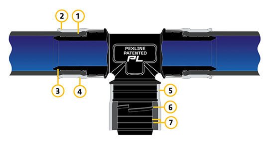 Designed using hydraulic engineering concepts proven on high pressure hydraulic fitting-to-hose connections, Pexline fittings have an outstanding feature which enable them to overcome high stresses experienced in installation and while in service. The aluminium rings transfer all loads applied on the tail section to the strongest section of the fittings, thereby eliminating the risk of failure.