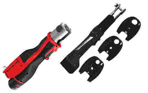 Buteline also have a mini battery-operated clamp tool, complete with battery, charger and separate jaws in 15mm, 20mm and 28mm. The tool is small and light -- without jaws fitted it’s only 377mm long and 1.7kg. This lighter weight combined with short pressing cycle makes the tool very easy to use. The charge time is only 15 minutes and the tool can do approx 150 clamps per charge. The Milwaukee 18V/1.3Ah Li-ion battery can be charge approximately 900 - 1000 times.