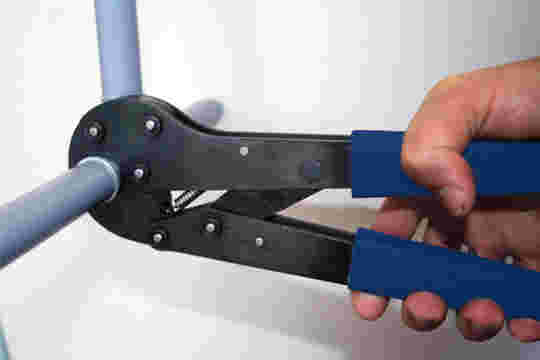 The ability to make secure connections is vital to the effectiveness of a plumbing system. With the Buteline Plumbing System, pipe is inserted into the fitting and clamping it (some other plumbing systems call it “crimping”). Buteline clamp tools have “head” designs that allow easy access and alignment.